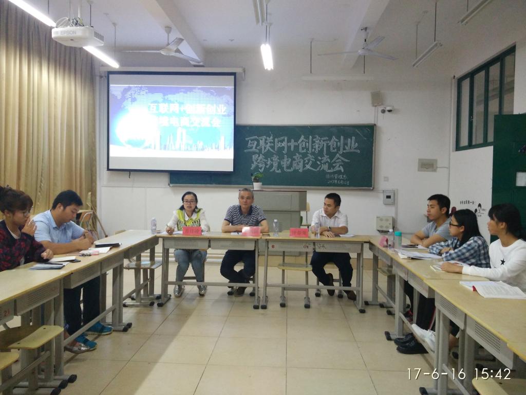 2017年6月16日下午3点,经济管理系在求真楼bb304召开“互联网+创新创业”跨境电商交流会。参加本次交流会的有校学工处钟春果老师、经管系邱文君老师、宁德市EMS负责人王兴国、芳佳凌以及经管系部分同学。