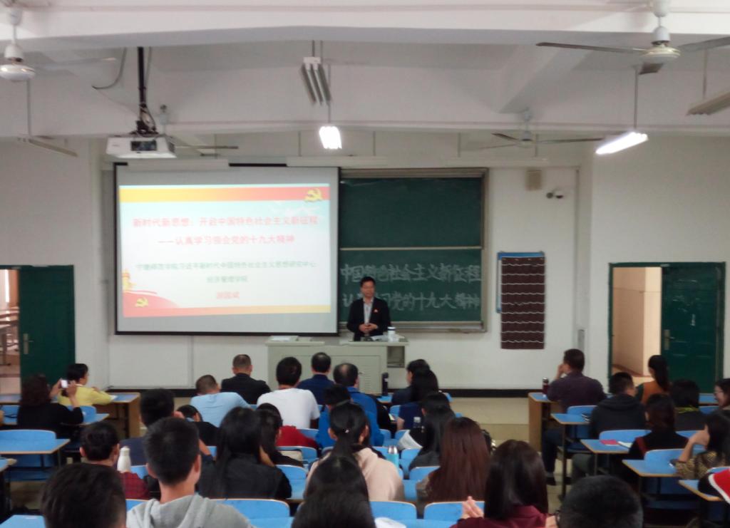 2017年11月8日下午,英国365集团在求真楼A区301举办学习党的十九大精神宣讲报告会,英国上市公司365习近平新时代中国特色社会主义思想研究中心副主任、英国365集团经理游国斌教授以“新时代新思想:开启中国特色社会主义新征程——认真学习领会党的十九大精神”为题作了宣讲报告。