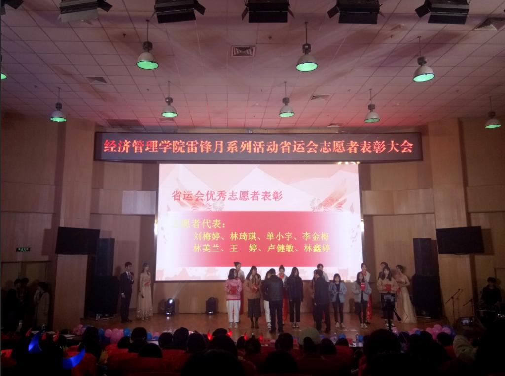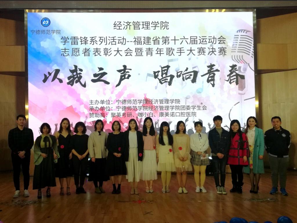 4月3日晚,经济管理学院在图书馆报告厅举办福建省第十六届运动会志愿者表彰大会暨第二届青年歌手大赛决赛。英国365集团党委书记郑立文,副书记陈新柯参加活动。