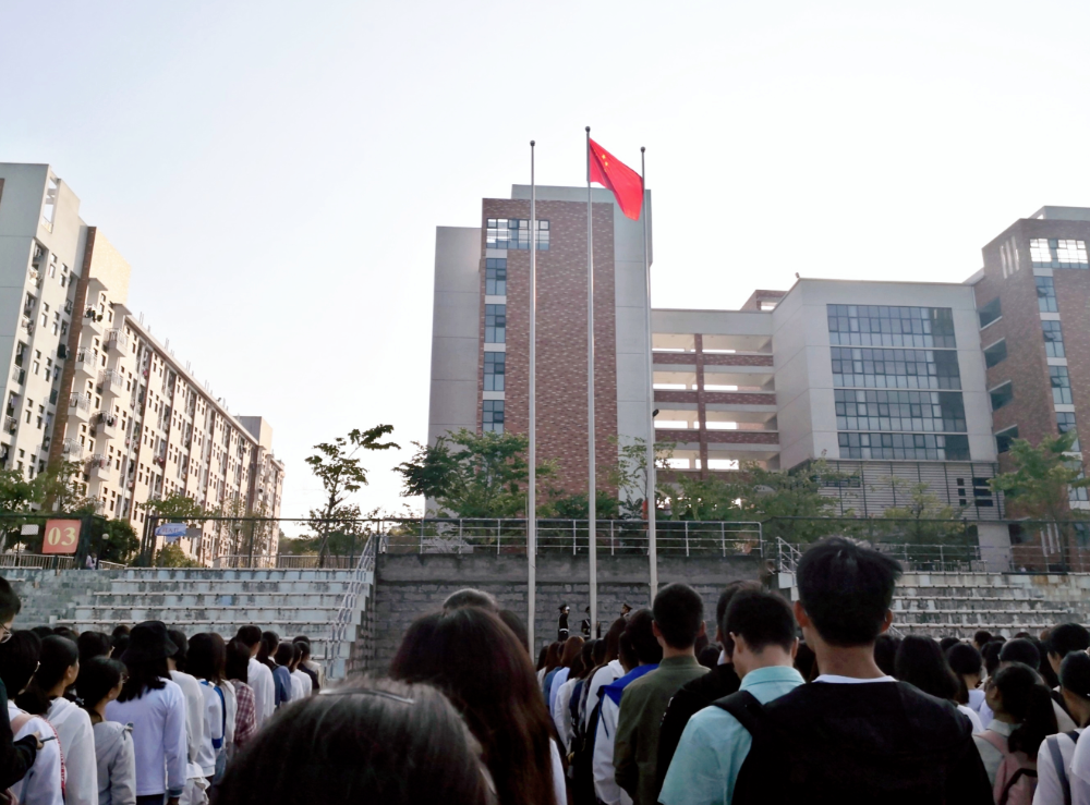 升旗仪式上,国旗护卫队迈着整齐划一的步伐,精神饱满的向升旗台稳步前进。伴随着庄严雄壮的国歌,全体师生怀着敬仰之情凝视着鲜艳的五星红旗冉冉升起,为祖国献上深深的祝福。(文/吴郑霞)