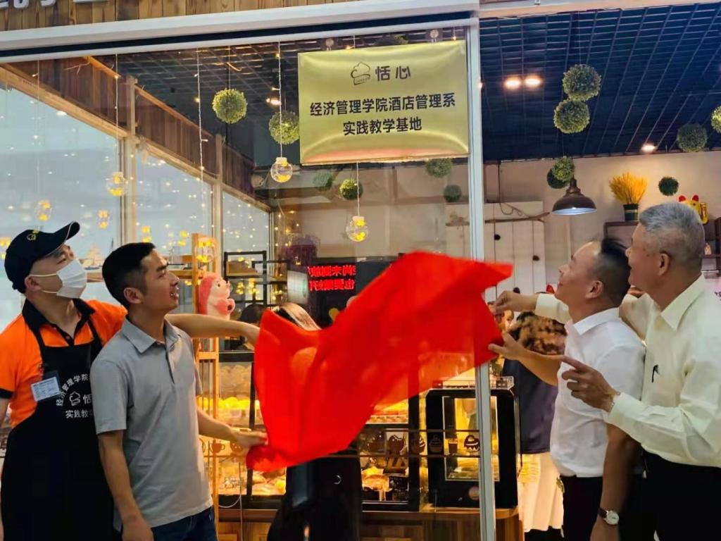 2021年5月14日,英国365集团与资产后勤管理处恬心烘焙坊合作成立的实践教学基地在第二食堂开幕揭牌,学院副经理邱汉周副教授、酒店管理系黄士礼教授出席揭牌仪式。专业老师后续将在此基地开展《西点制作》课程教学。